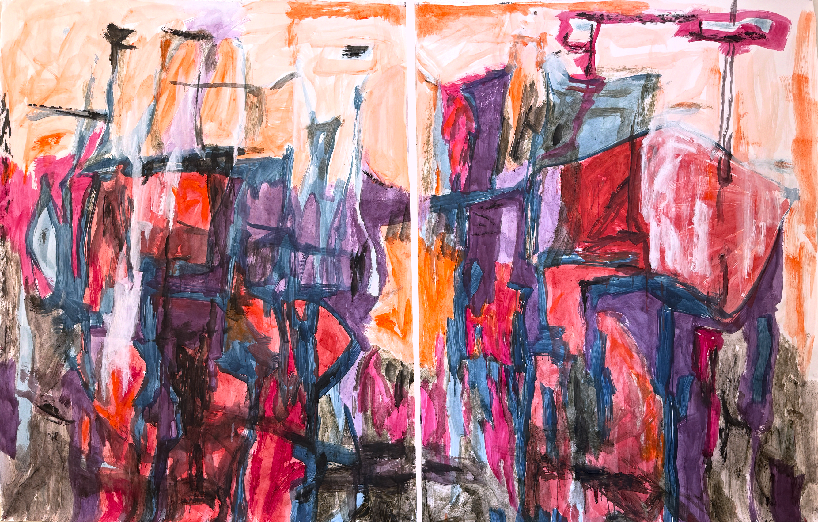 “Twin City”, 2026, 58″ x 96″ (diptych), oil on paper